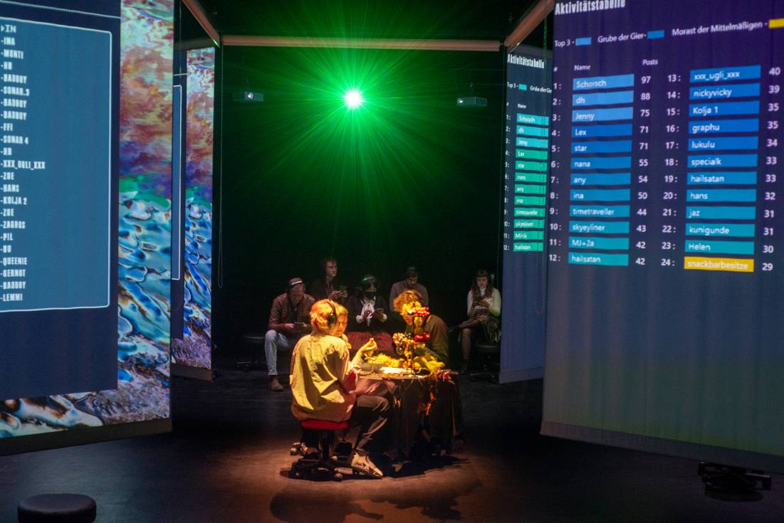 Wie lebt es sich im Kollektiv mit Künstlichen Intelligenzen? In COMMUNE AI gründet das Publikum eine Kommune im digitalen Raum und bewohnt eine eigens entwickelte virtuelle Plattform. Die menschlichen Mitspieler:innen äußern politische Ziele, Wünsche und Erwartungen und die KIs machen Vorschläge zu ihrer Umsetzung. Wie bearbeiten die KIs Kommunenkonflikte rund um Geldverteilung, Putzpläne, Besitzverhältnisse, Machtfragen und Eifersucht? Welche neuen Möglichkeiten und Risiken eröffnet das Zusammenleben von Menschen und KI-Systemen? Wie können die profitorientierten und oft diskriminierenden Strukturen von KI verändert werden? Und was können KIs selbst zu diesen Fragen beitragen?