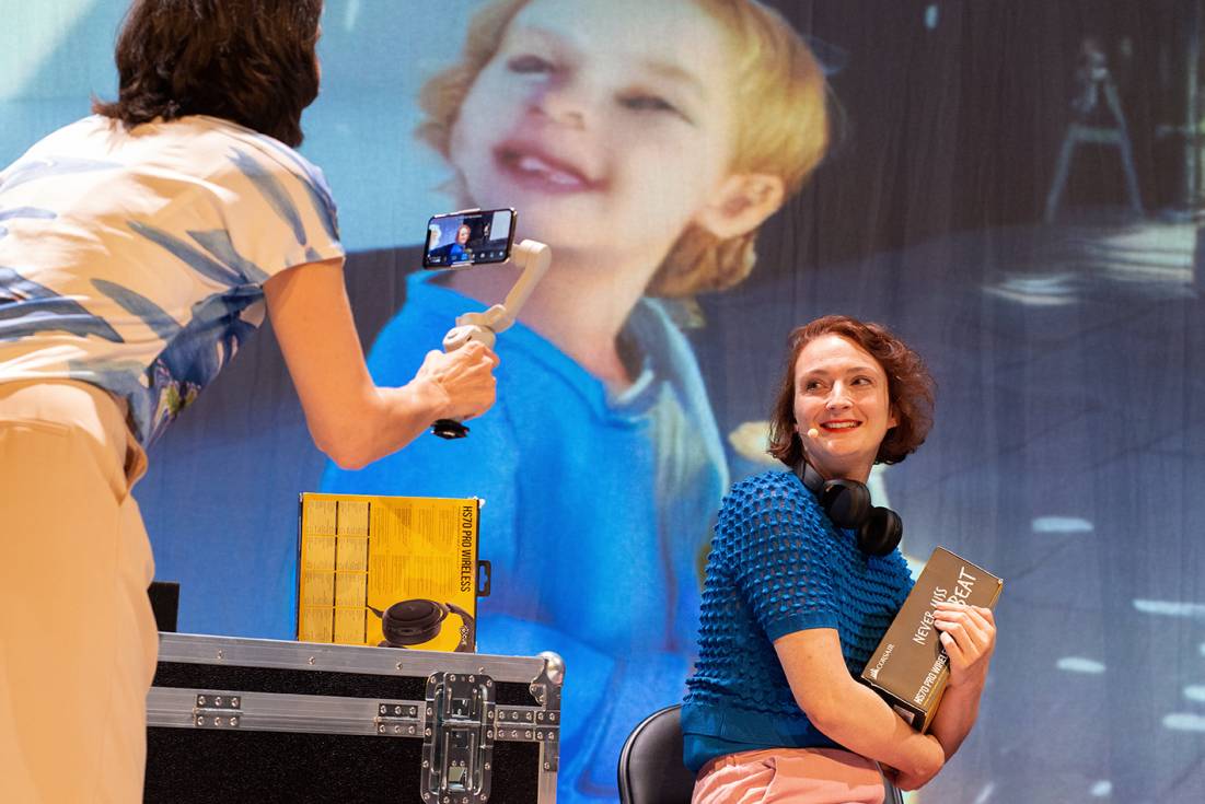 Die Performerin leiht einem Chatbot ihren Körper, versucht eine Brücke zu sein für eine physische Präsenz, die die künstliche Intelligenz nicht kennt. (…) Urkomische Effekte entstehen bei dem Versuch der künstlichen Intelligenz Wege in die menschliche Emotionalität zu ebnen.